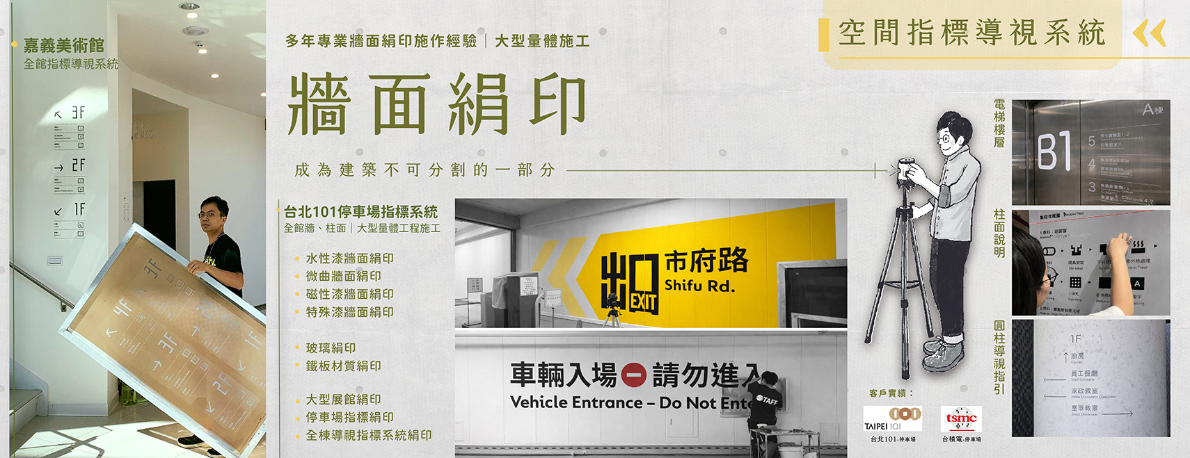 停車場與大樓 - 絹印指標設計