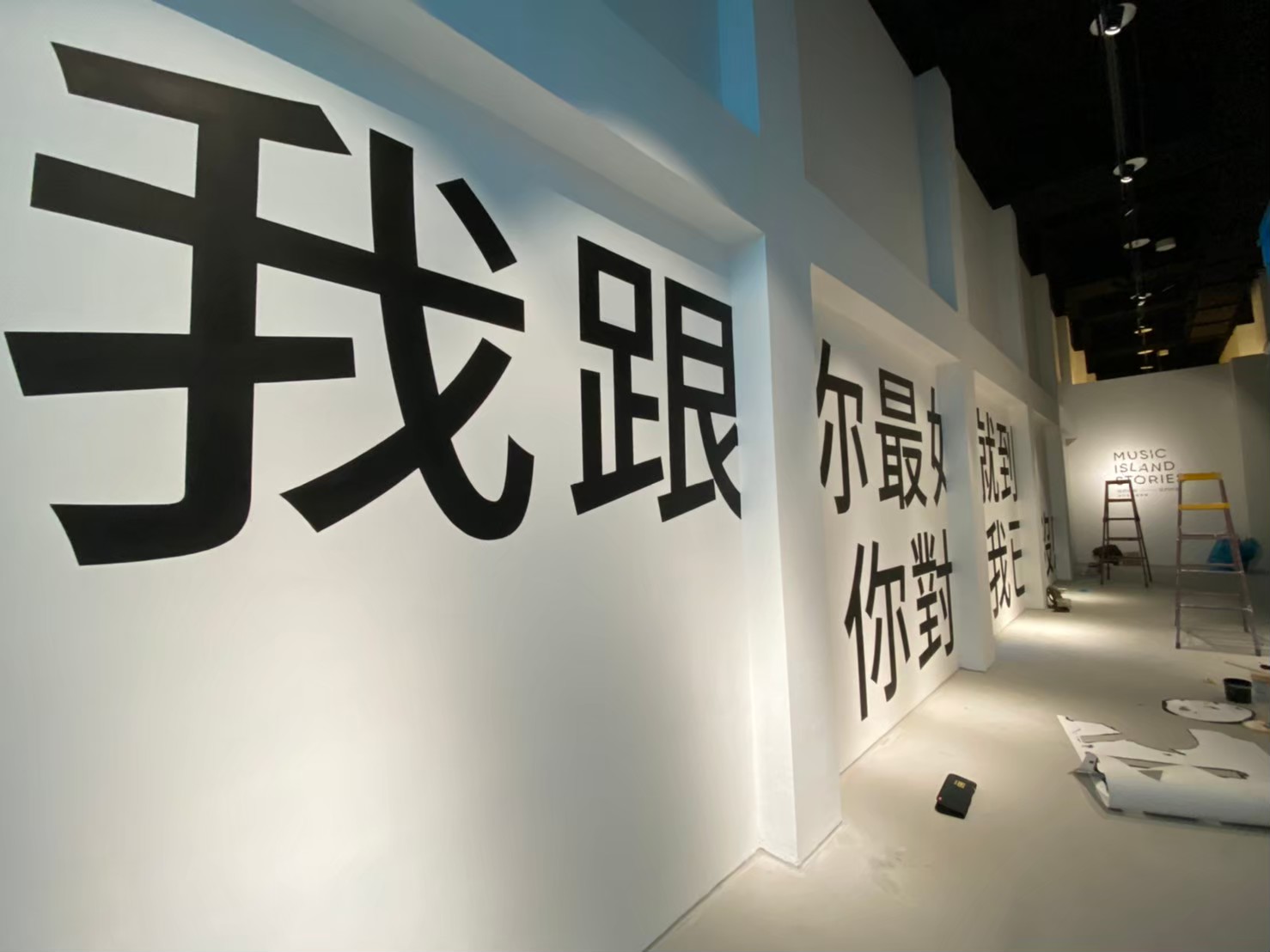 從今年三月開始就進場施作來來回回約半年時間把全館牆面文字、感謝牆、超巨型文字描繪、弧形牆歌詞、樓梯間、黑板、玻璃、樓層索引、滅火箱、廁所標示牌等,都絹印 了,終於在這個月可以順利開展!