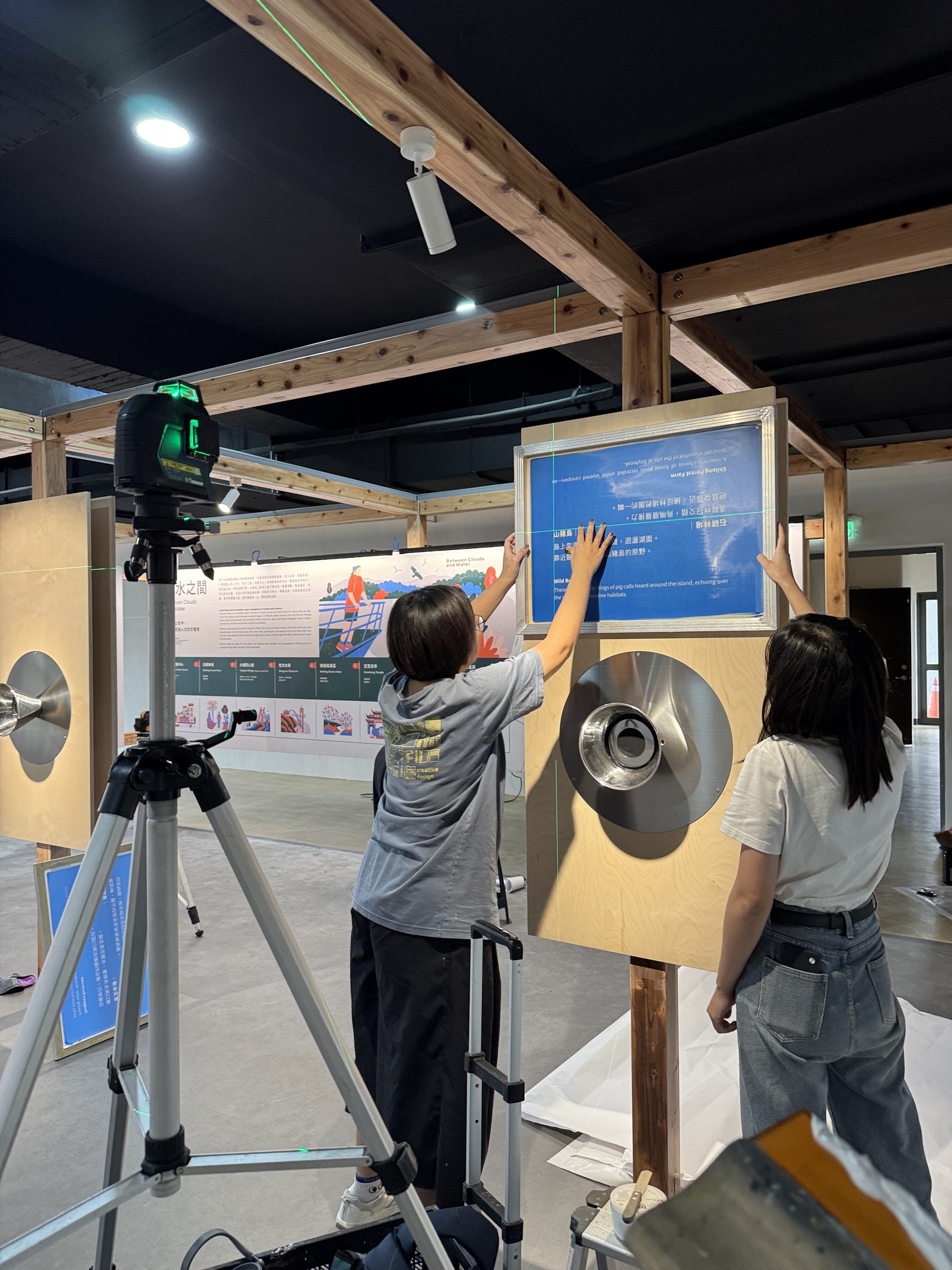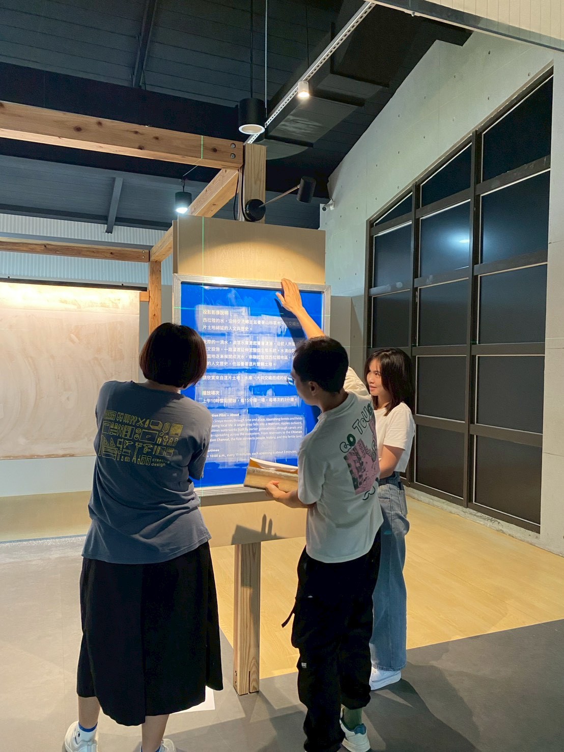 我們現場絹印文字在木展板及鐵板上,工作室均使用環保水性油墨,印在金屬鐵板上是用了加強黏的水性油墨,再以熱風槍高溫固化增加牢度。
