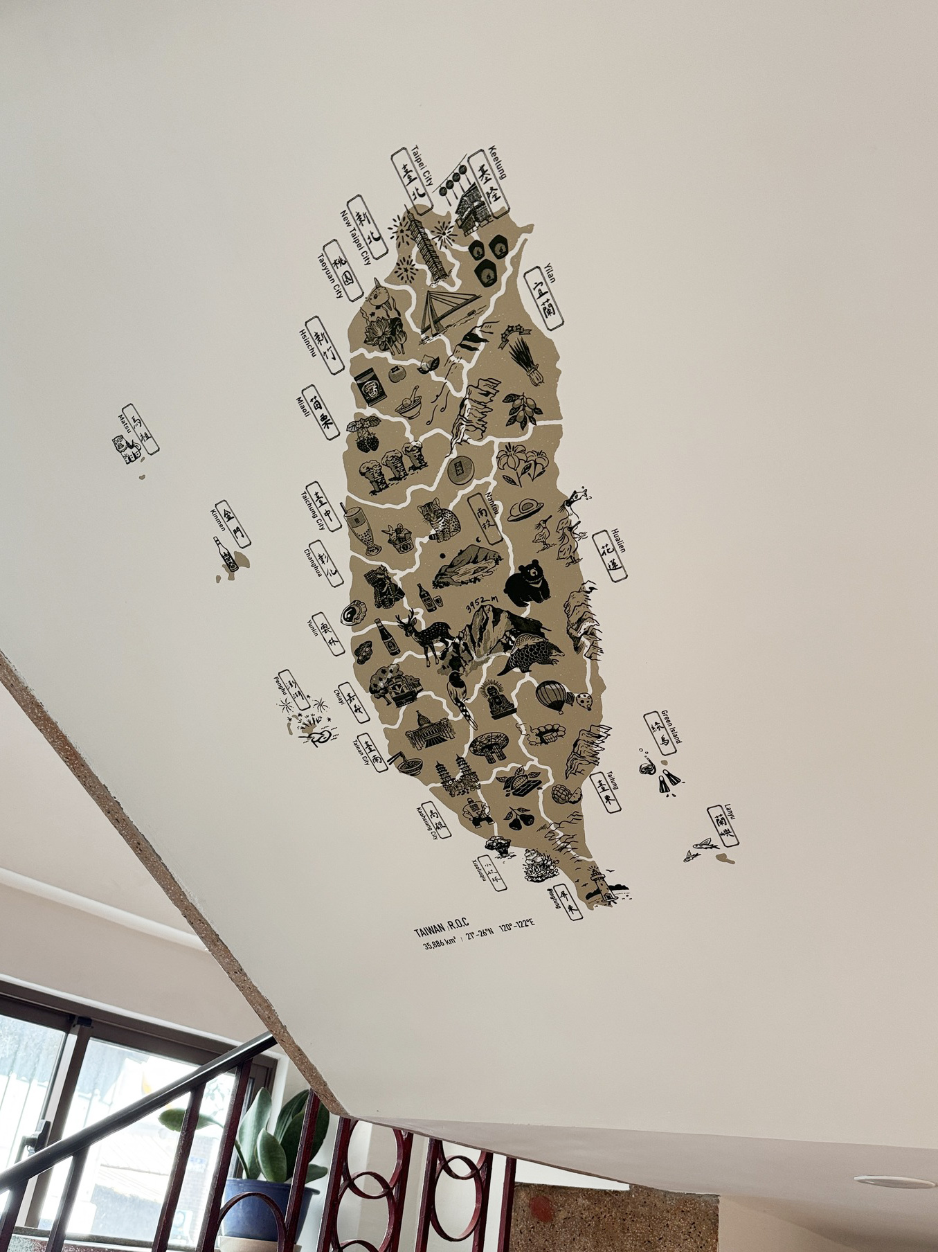 我們在樓梯的斜角面印上工作室設計的【台灣地圖】當作打卡牆!