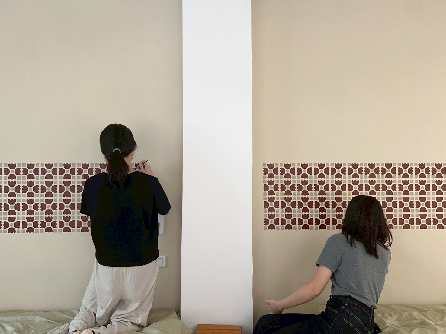 感謝老闆的信任讓我們自由發揮,我們依據每間房間不同的地板磁磚、整體空間配色參考做出搭配,還真是第一次在床上絹印,印完除自己覺得喜歡,也感受到老闆開心的心情很高興我們的牆面印花可以找到適合的空間發揮!印出來的效果讓我們更加自信繼續努力~ 讓牆面印花成為空間敘事的新語言!