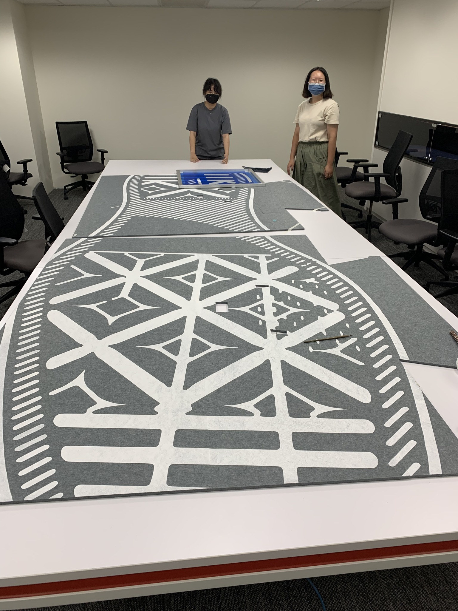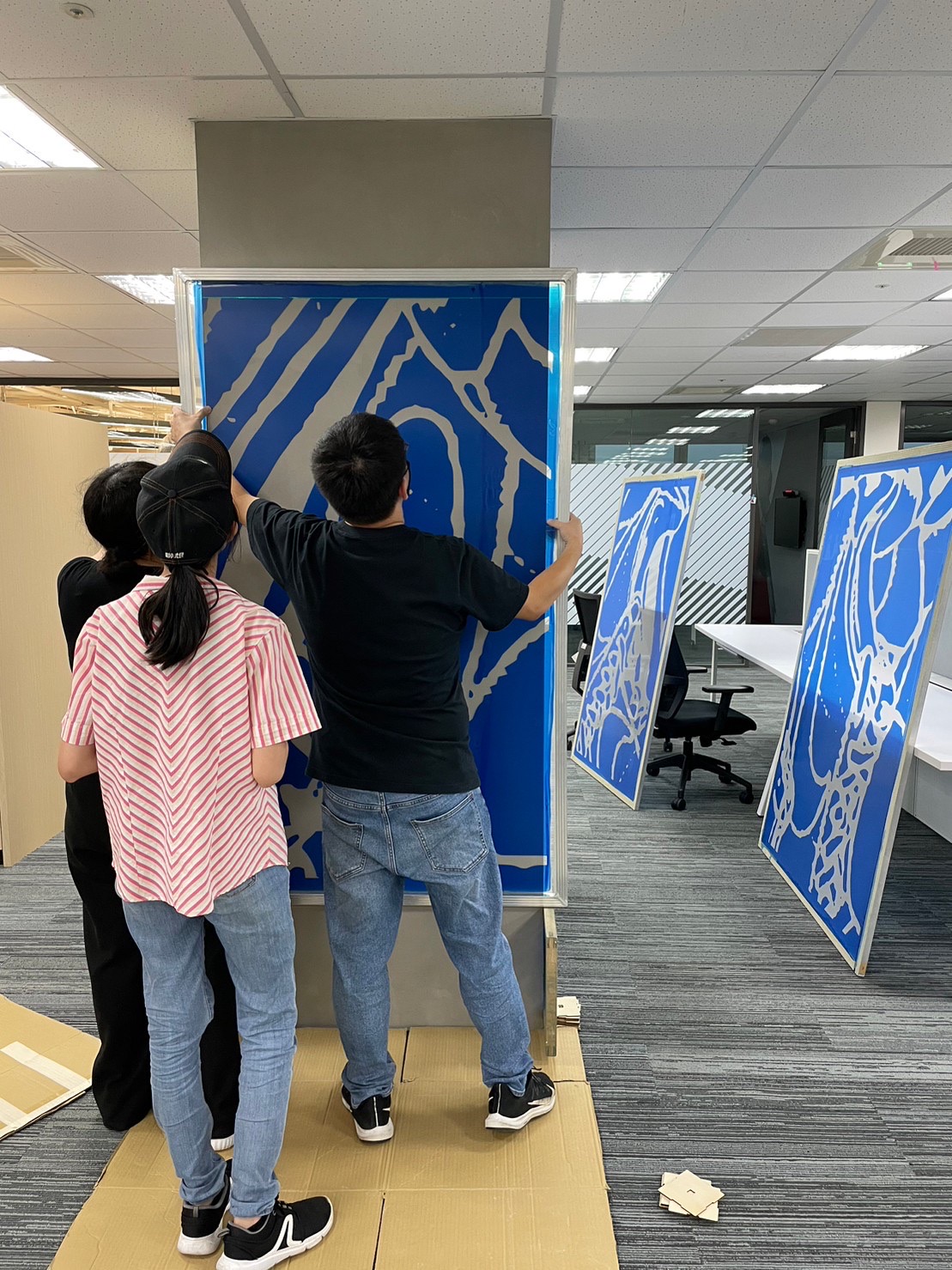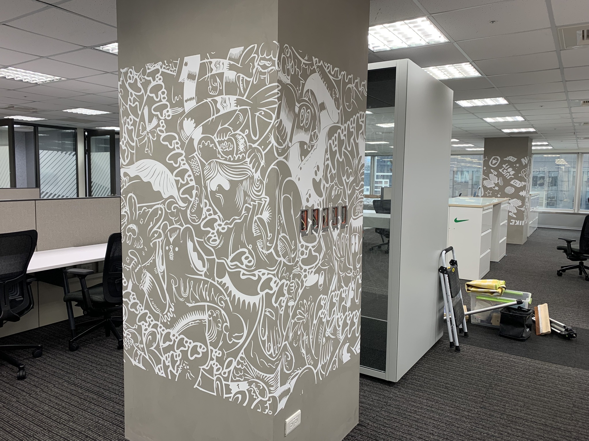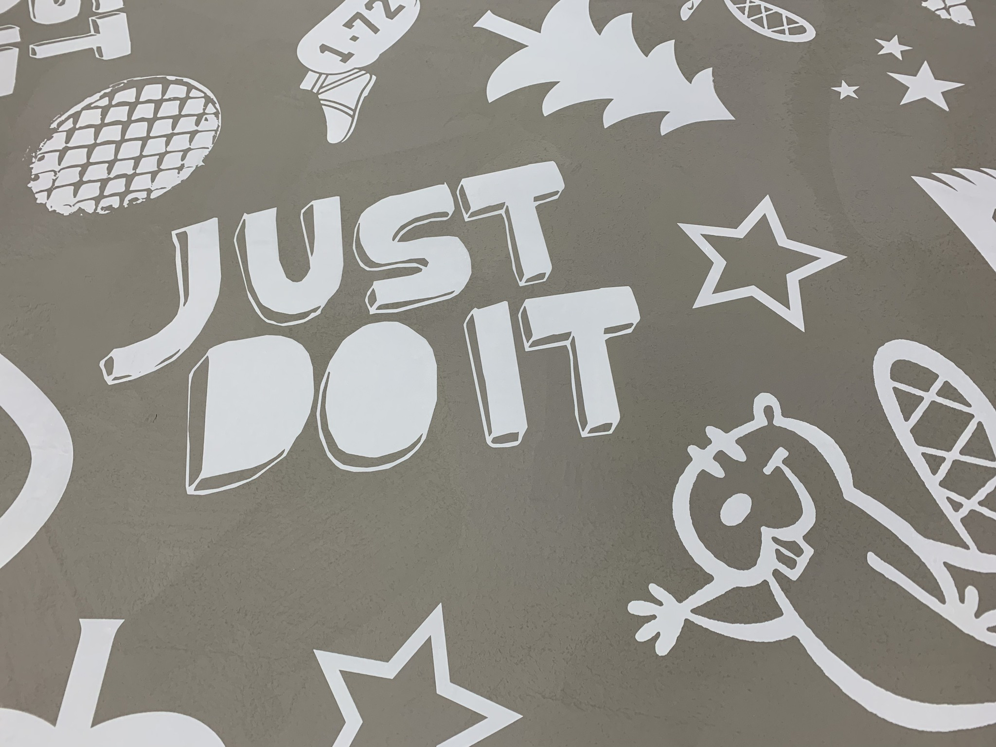 #絹印施工 #牆面絹印 #牆壁絹印 #牆面印刷 NIKE總部 柱面、隔音牆大版絹印 / 2023.09 Dec 27. 2023 大版的操作有一定的難度, 這次的版又比以往更大,需四人同時協調操作 不過最挑戰的莫過於柱子四面圖案需要連續接上! 製版及水平對位都是關鍵,一面跑掉後面就會接不上 十分需要團隊合作的默契及現場經驗。 一共做了40個 4XL+的超大版 接受挑戰 JUST DO IT! ★歡迎各單位絹印課程、活動邀請! 請洽:玩印FB私訊、玩印官方網站 : 牆壁絹印