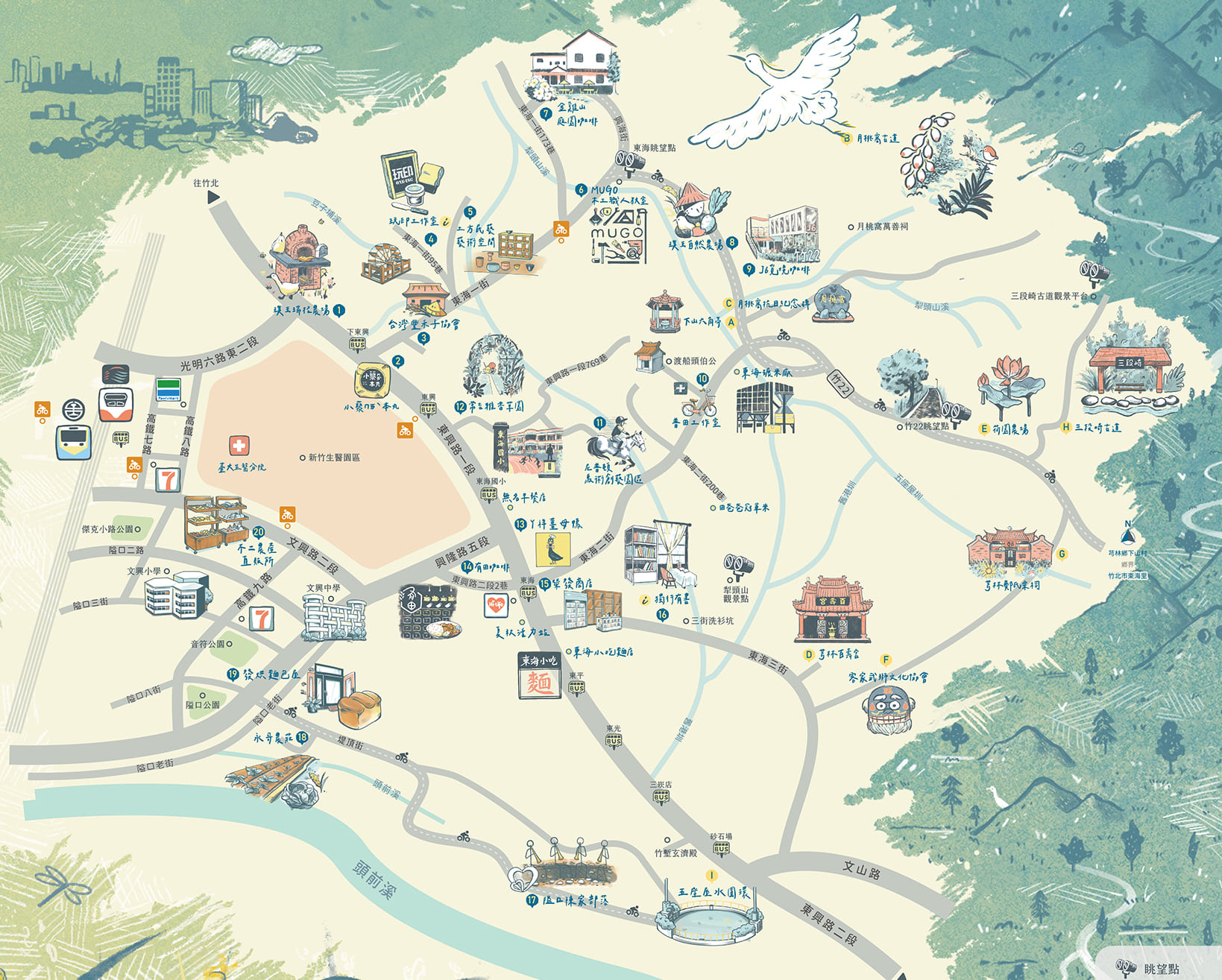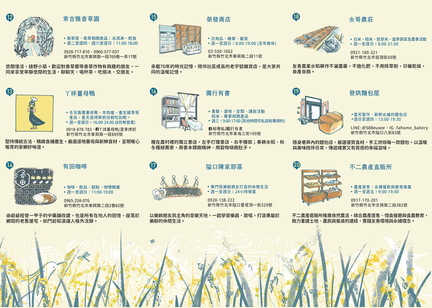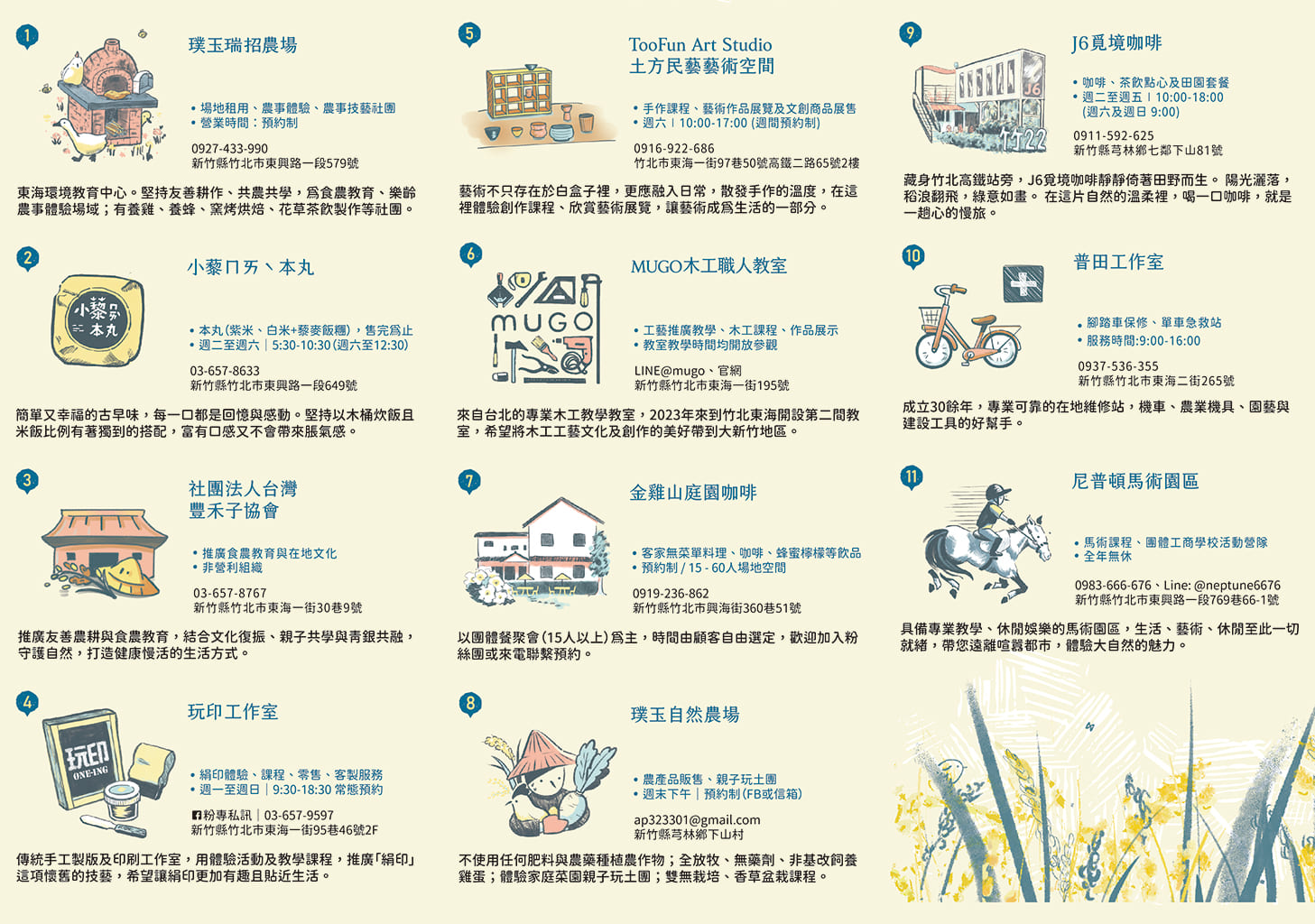 我們花了許多時間踏查拜訪、繪圖設計,整理出附近的店家及景點資訊,希望讓大家來到這裡能有更多佇足。