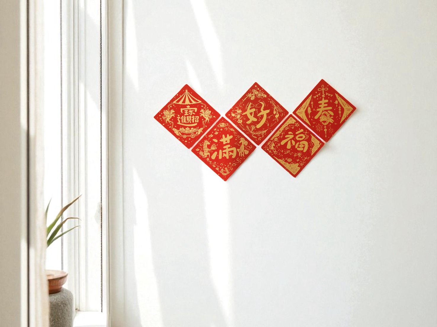 一套五入,春、福、好、滿、招財進寶,可以貼在: