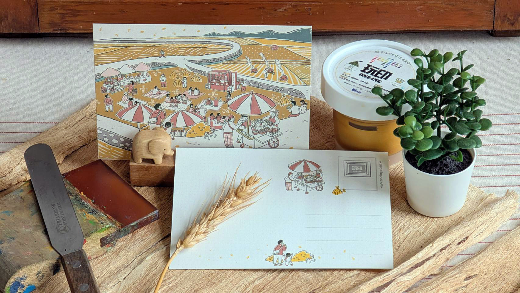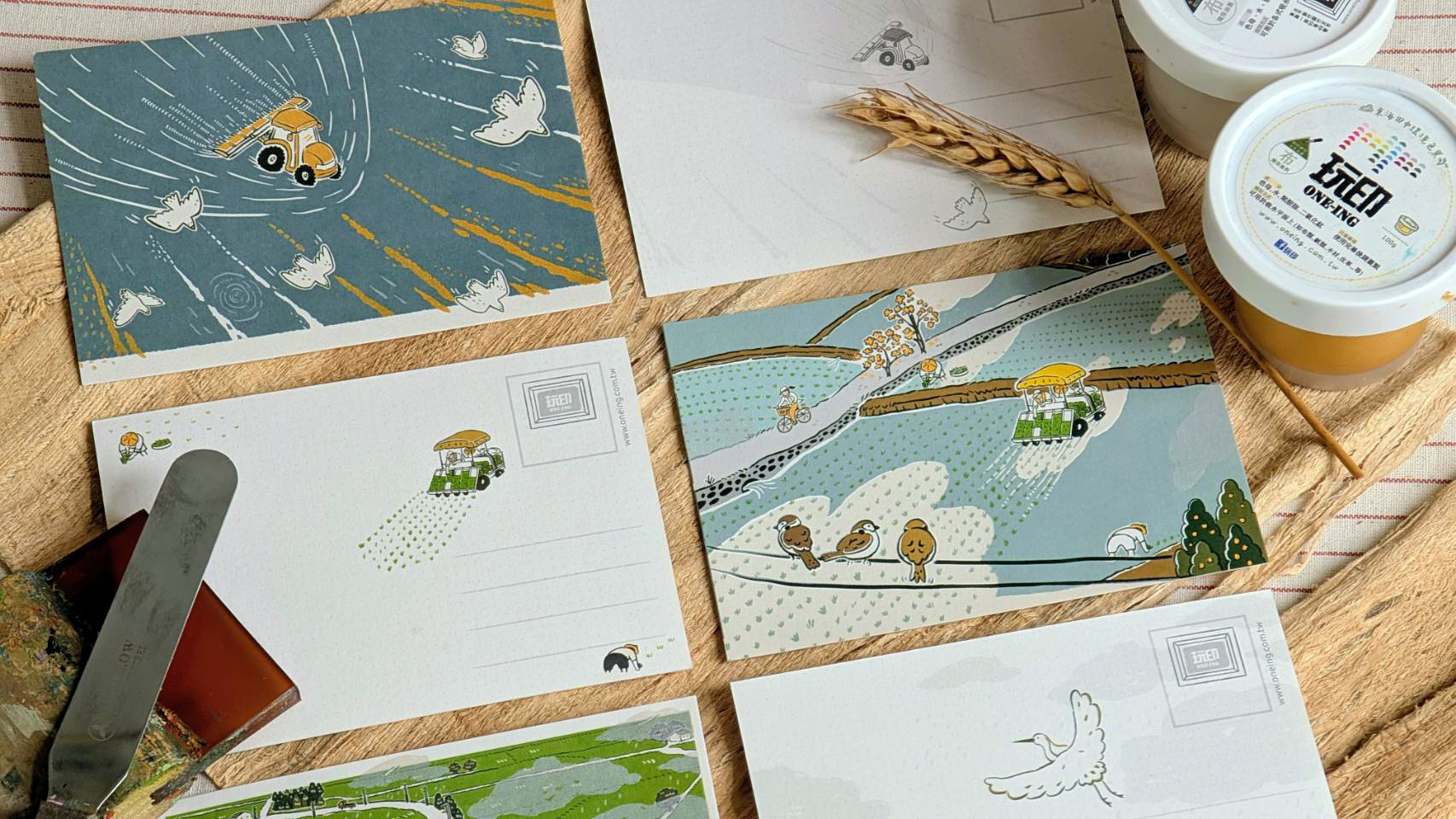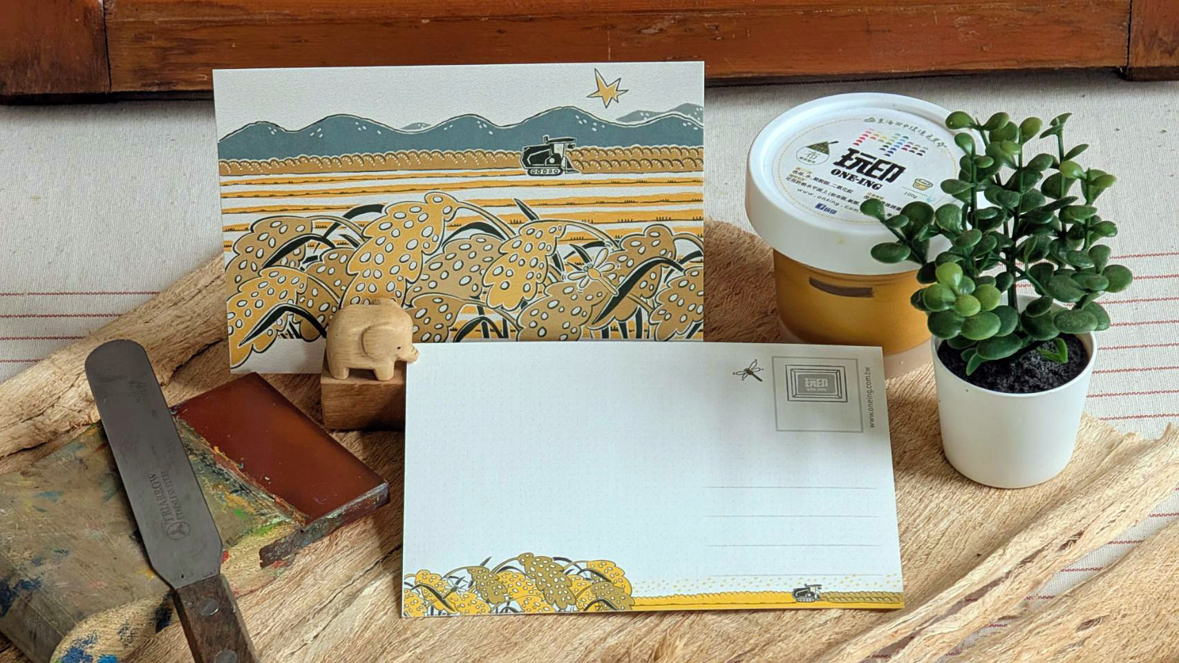 玩印工作室位於城鄉交接東海田間,我們我們拜訪專業農夫,採集新竹米倉的故事,創作田園圖像絹印「節氣稻曆」,傳遞東海田中的意象。