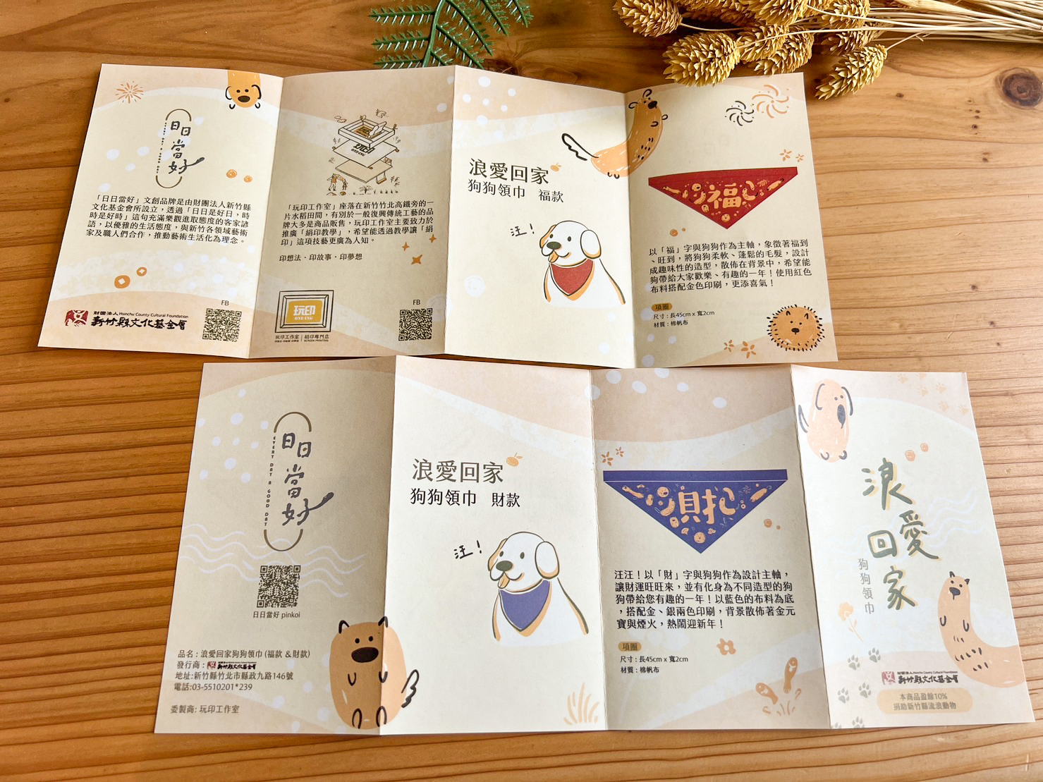 玩印工作室與財團法人新竹縣文化基金會合作推出浪愛回家狗狗絹印領巾,