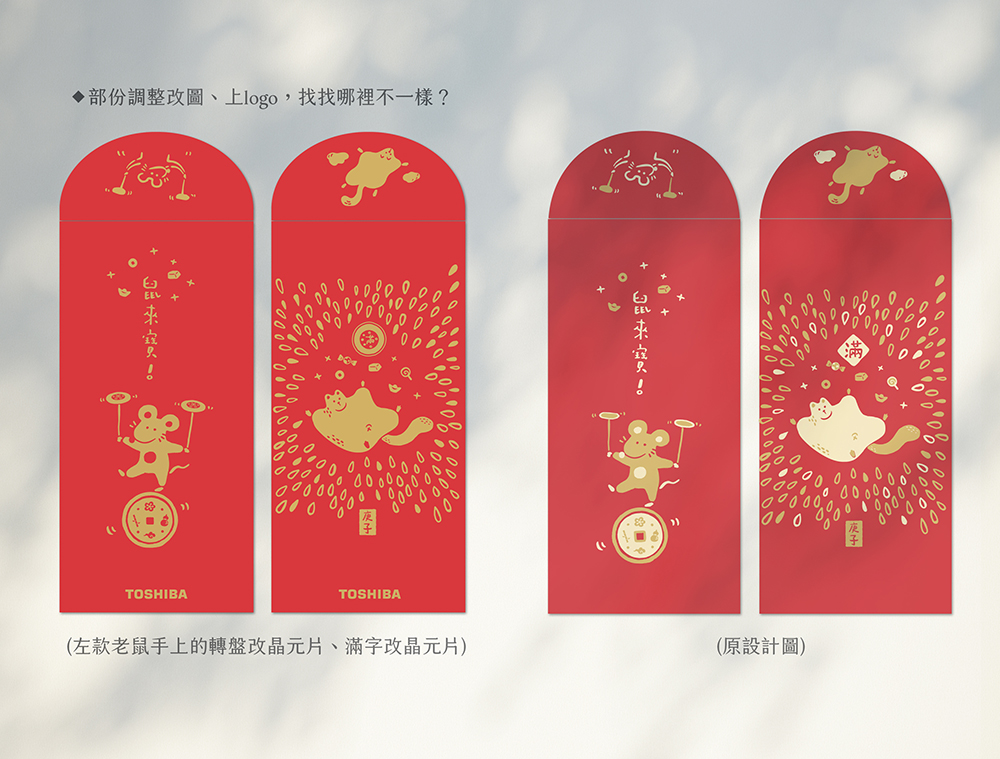 例如:選定款式後告知訴求,如電子公司將元寶改為晶片、煙火改為電路,並加上Logo。