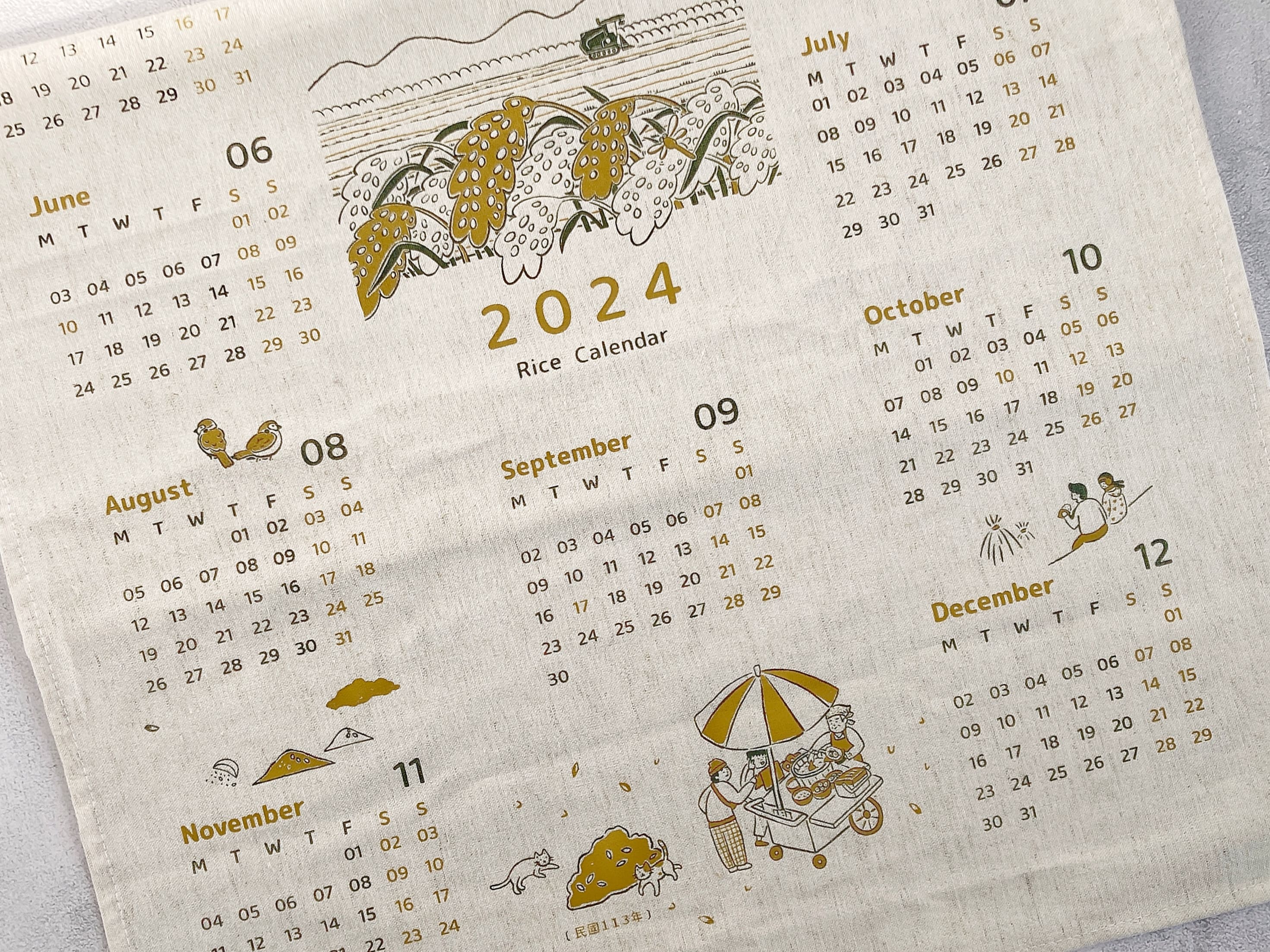 雙色手工絹印《2024年節氣稻曆》布年曆/掛曆