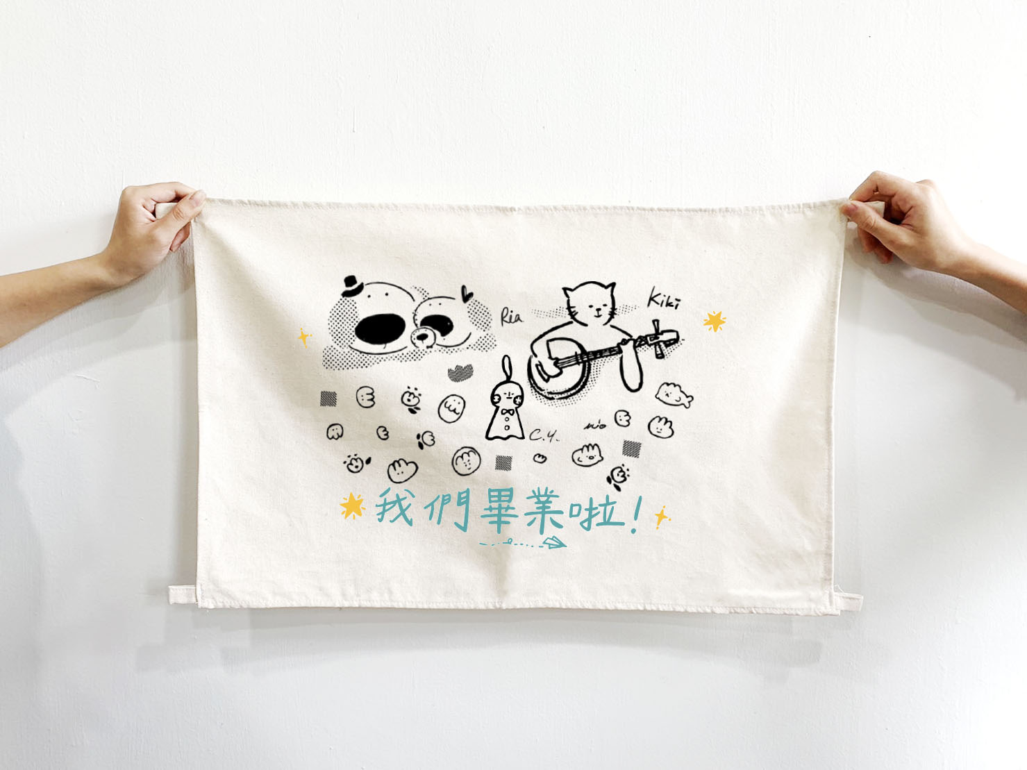 ✦主打商品手幅布旗,不僅可以在拍畢業照時當作獨特的道具,更可以作為居家空間的掛飾,是你們在畢業季定格的永恆回憶。