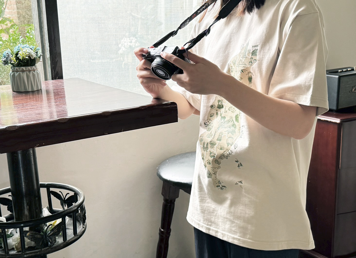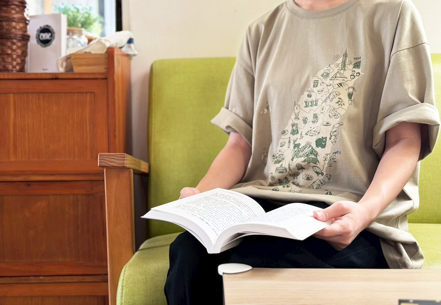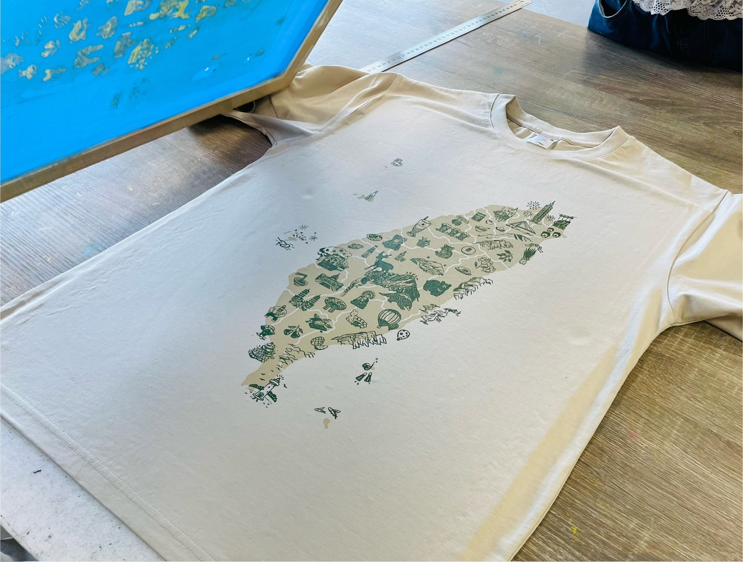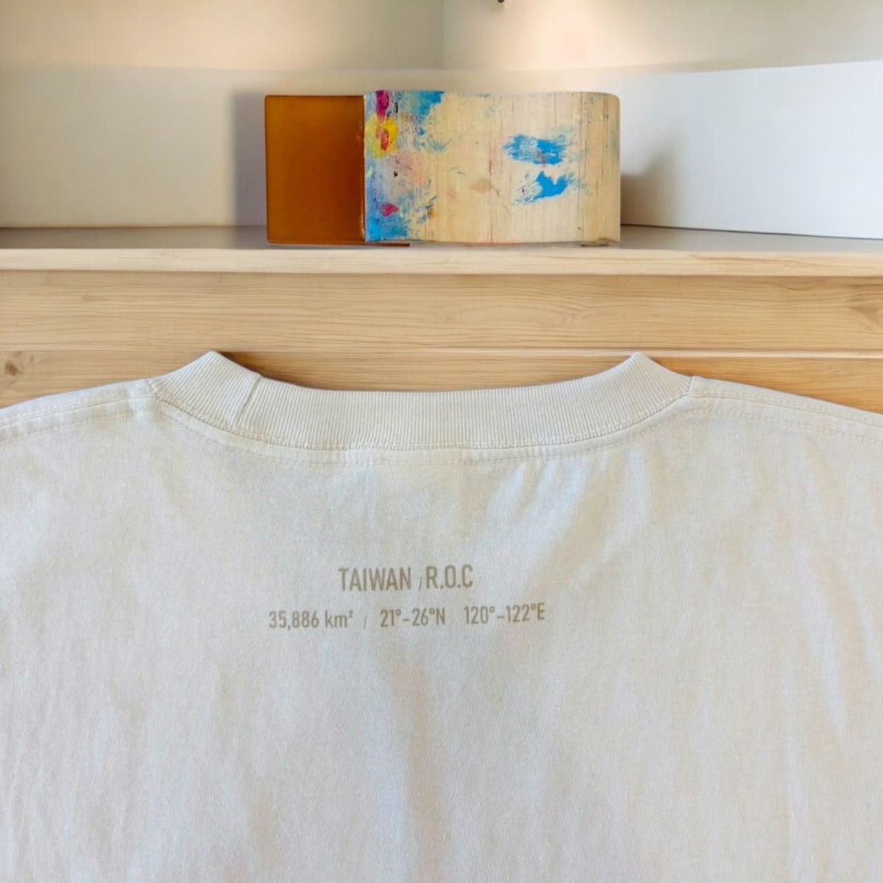 這是一件結合設計與土地記憶的T-shirt,適合日常穿搭,也適合作為旅行紀念與海外伴手禮,