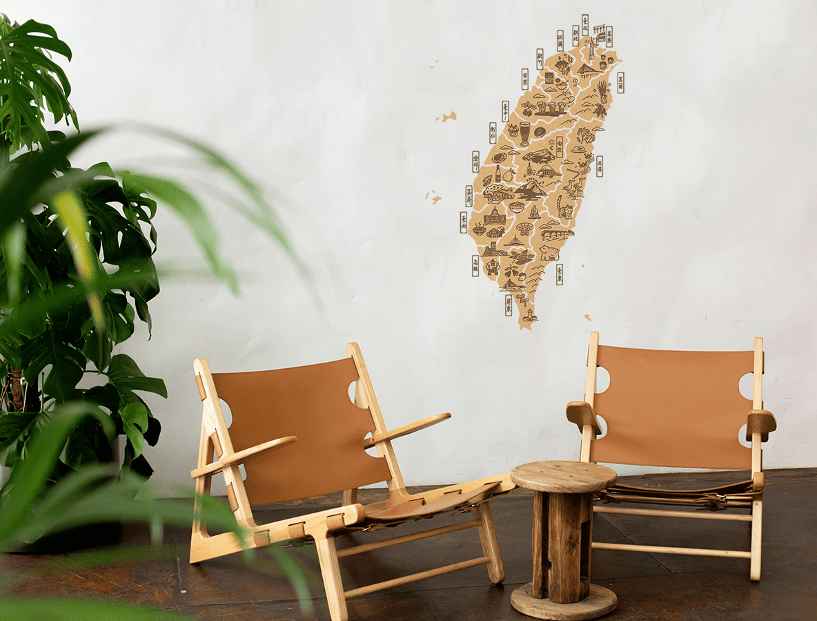 我們繪製了台灣各地的景點、地標、在地小吃、原生動物與山脈線條,