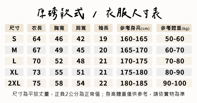 ▲ 尺寸:S / M / L / XL / 2XL(中性版型)